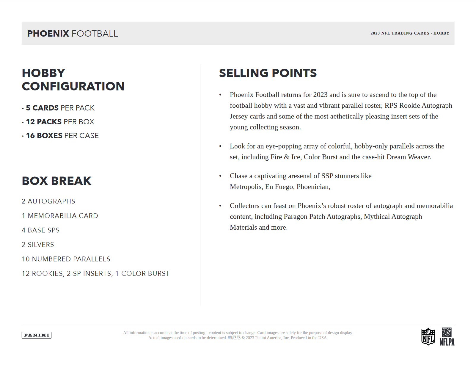 - Phoenix Football returns for 2023 and is sure to ascend to the top of the football hobby with a vast and vibrant parallel roster, RPS Rookie Autograph Jersey cards and some of the most aesthetically pleasing insert sets of the young collecting season.